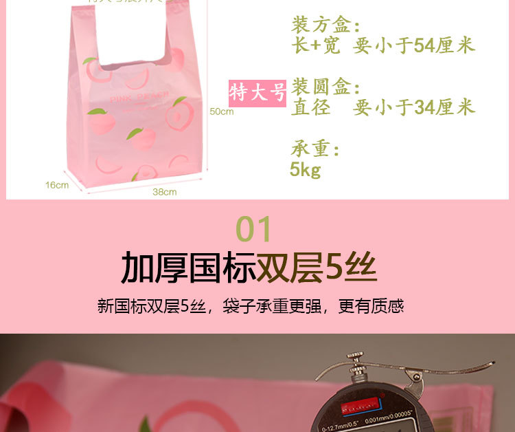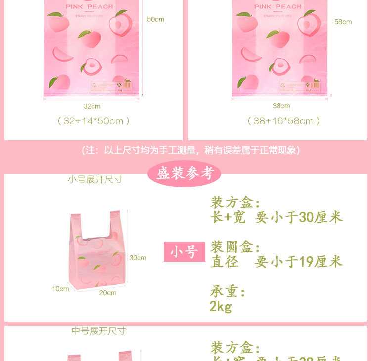 • 핑크 가방 방수 복숭아 패턴 매체: 26*42(100) 양각 소재