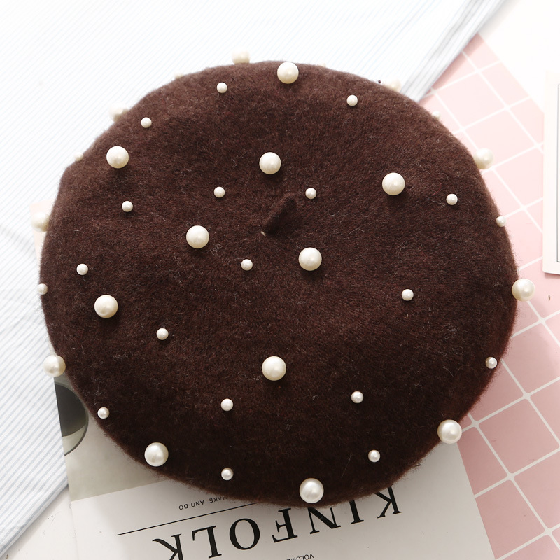 한국식 가을과 겨울 새로운 캐시미어 럭셔리 중공업 베레모 별 페르시 진주 리벳 울 베레모스토어 가기