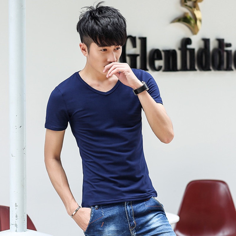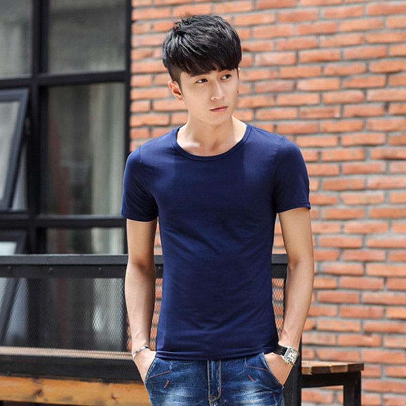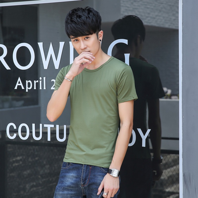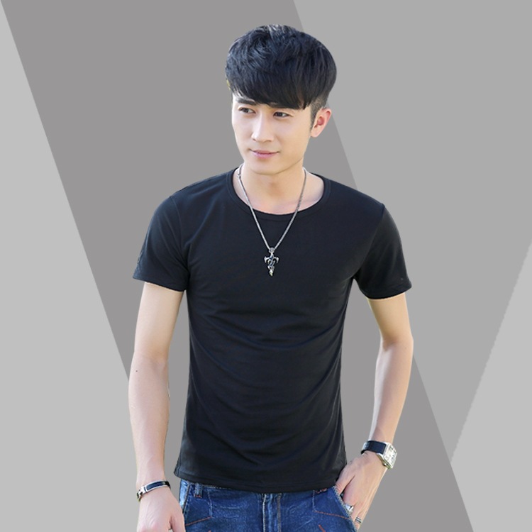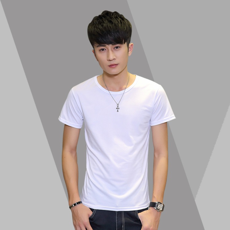 2024 여름 새로운 순수한 흰색 남성 승무원 목 짧은 소매 티셔츠 단색 짧은 소매 트렌드 기본 셔츠 머리카락 세대