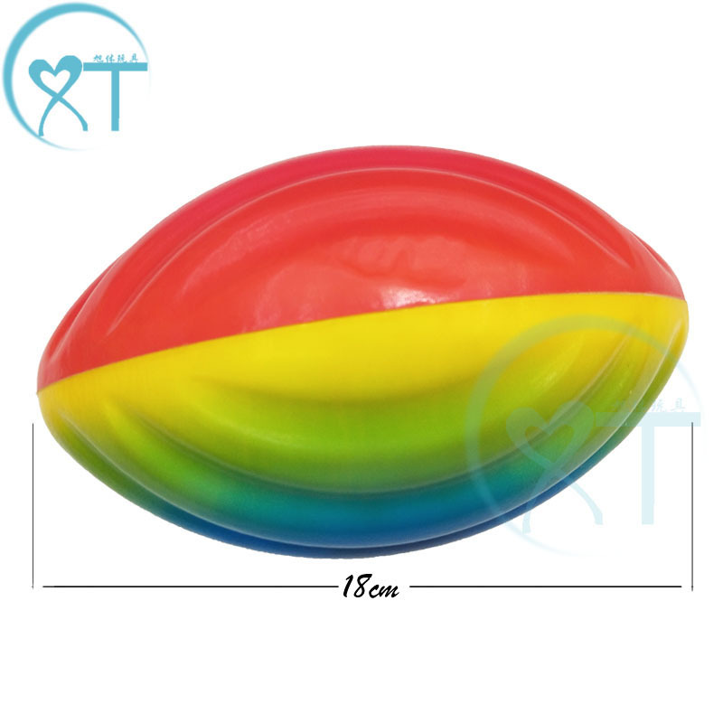 국경 간 제조 업체 어린이 스포츠 장난감 공 pu 거품 스폰지 탄성 공 18cmpu 공 무지개 럭비 도매