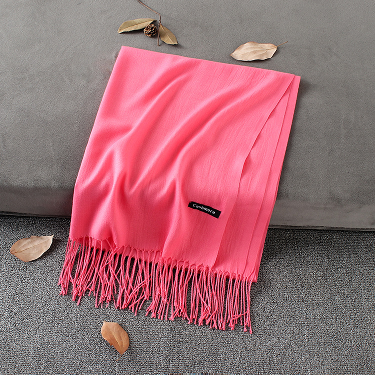 秋冬新款韩版围巾 真丝羊毛纯色丝巾防晒沙滩巾女士披肩 围巾批发