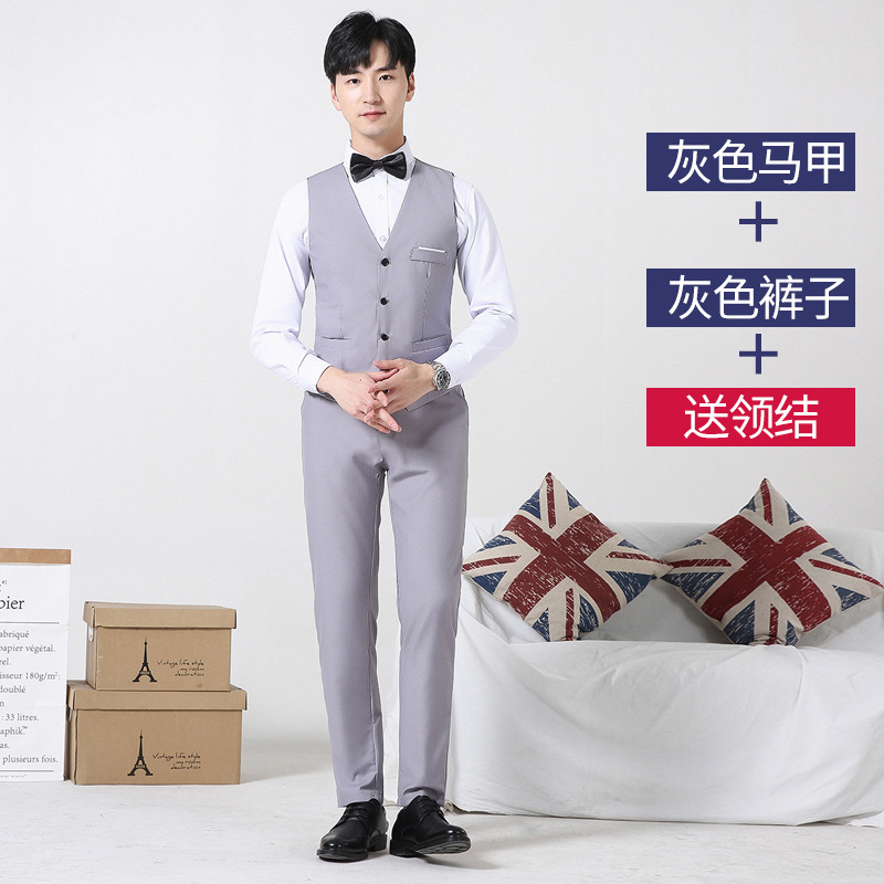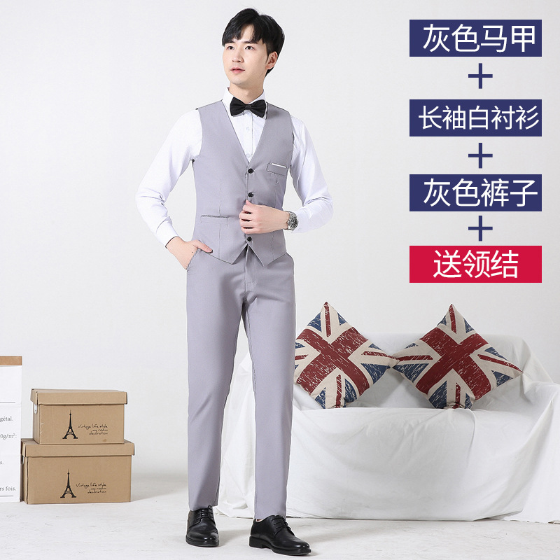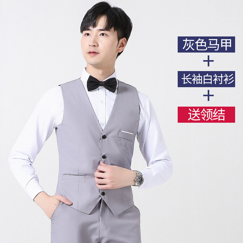 • 나비 넥타이를 보내는 회색 양복 조끼 + 바지 + 셔츠