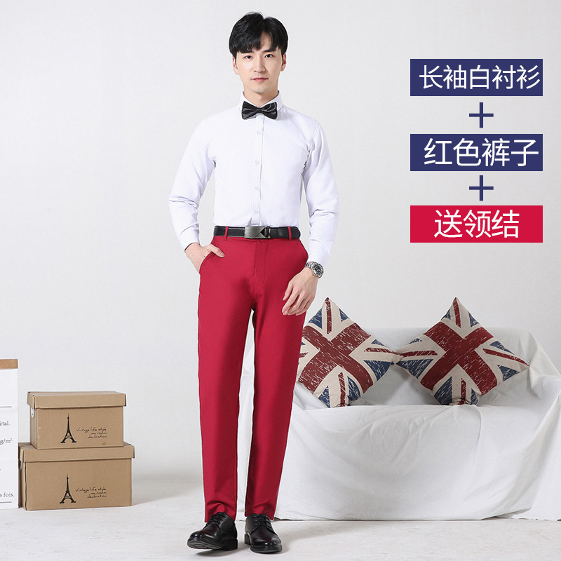 • 흰 셔츠 + 와인 바지 보내기 나비 넥타이