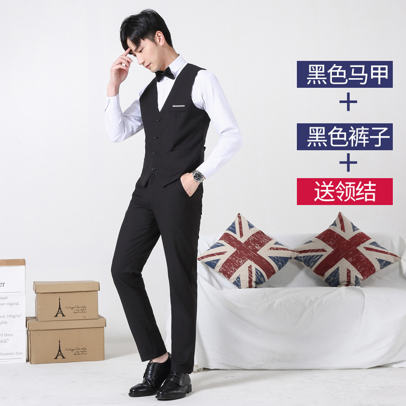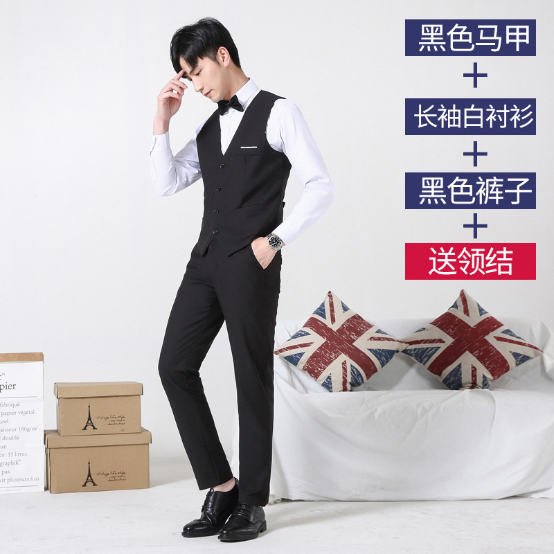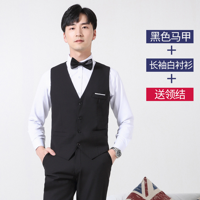 • 나비 넥타이를 보내는 검은 양복 조끼 + 바지 + 셔츠