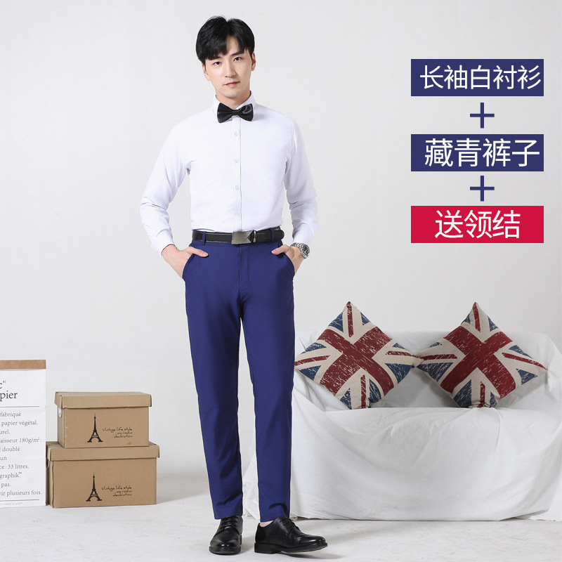 • 흰 셔츠 + 나비 넥타이를 보낼 다크 블루 바지