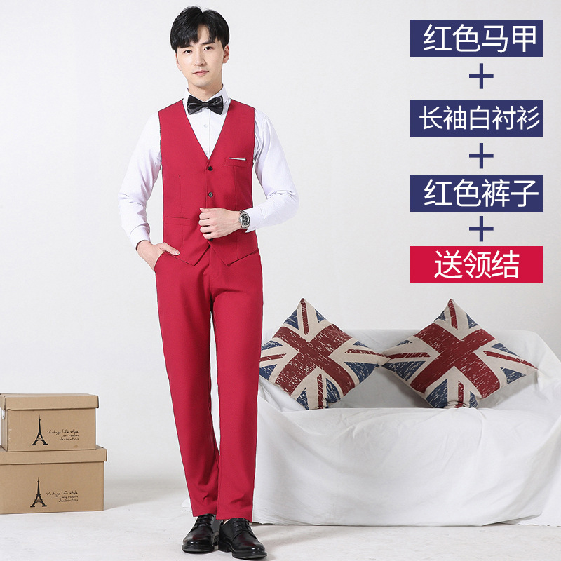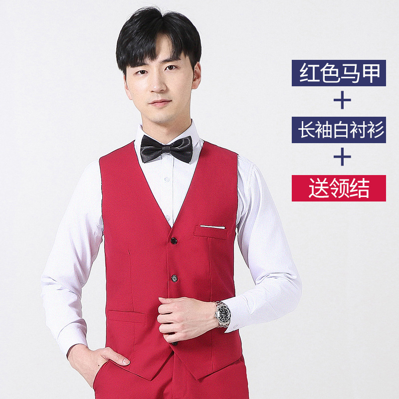 • 나비 넥타이를 보내는 버건디 양복 조끼 + 바지 + 셔츠