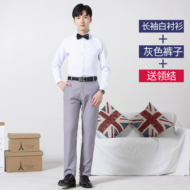• 흰 셔츠 + 회색 바지 나비 넥타이 보내기