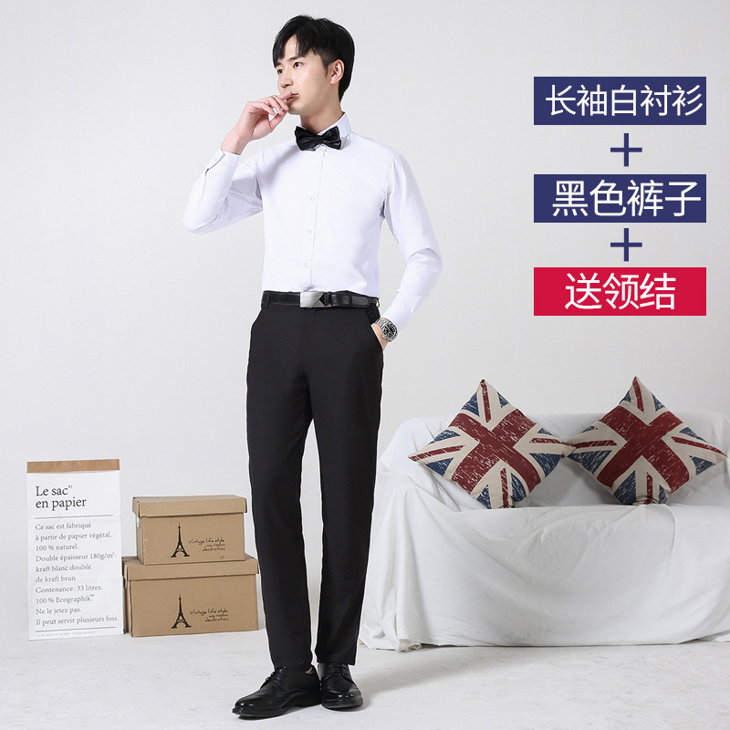 • 나비 넥타이를 보내는 흰 셔츠 + 검은 바지