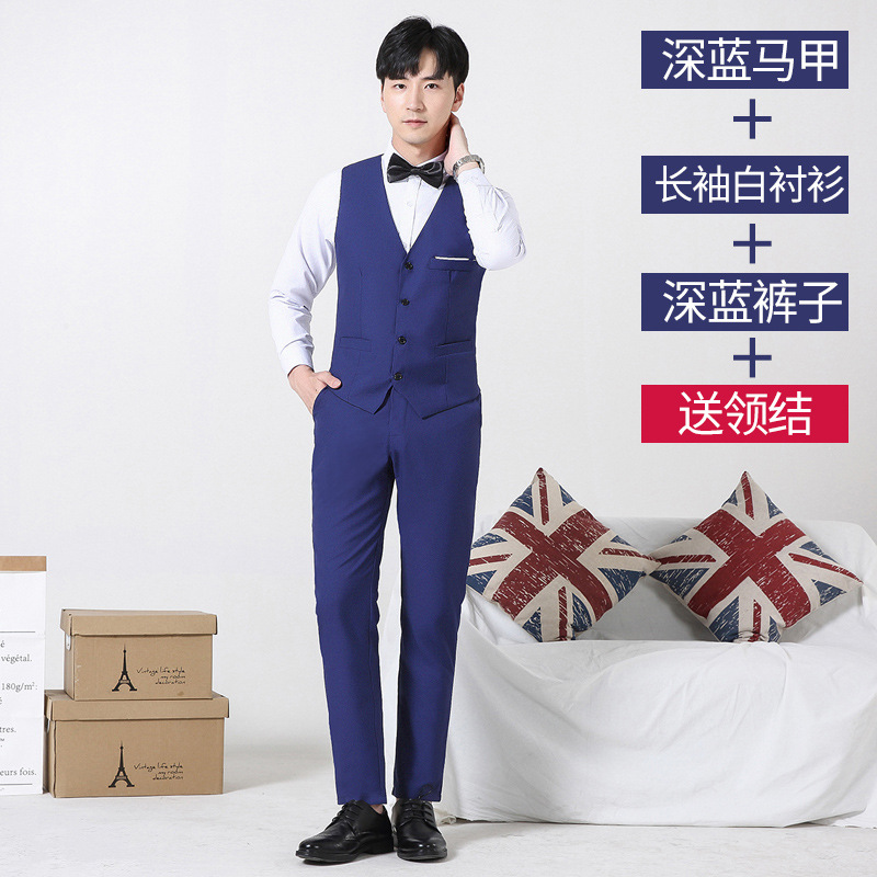 • 나비 넥타이를 보내는 다크 블루 양복 조끼 + 바지 + 셔츠