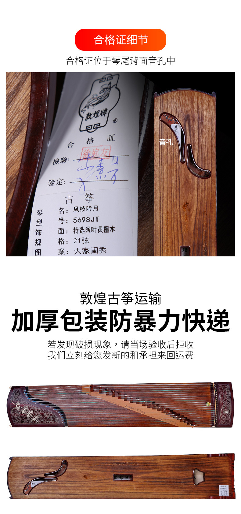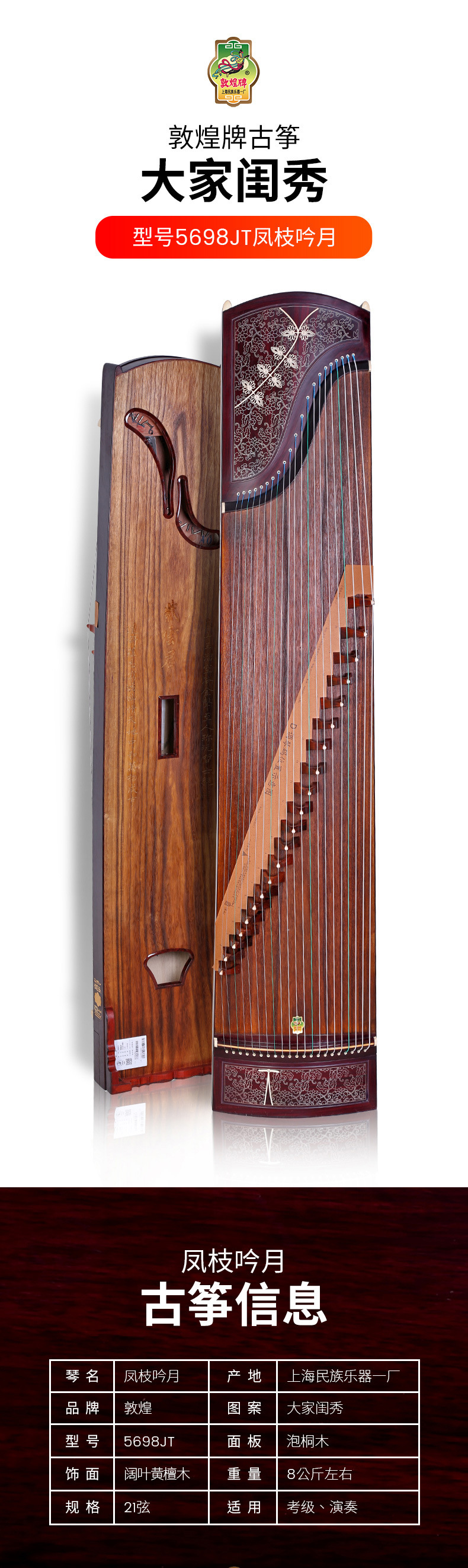 둔황 구청 5698JT 넓은 잎이 달린 노란 백단향 Fengzhi Yinyue 숙녀 둔황 카드 놀이 가르침 Guzheng스토어 가기