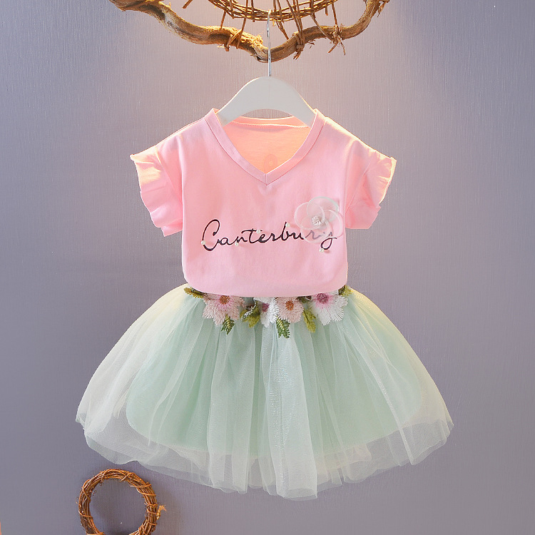 아동 의류 소녀 반팔 세트 면 탑 + 투투 스커트 2 피스 소녀 여름 한국 원피스 공주 원피스스토어 가기
