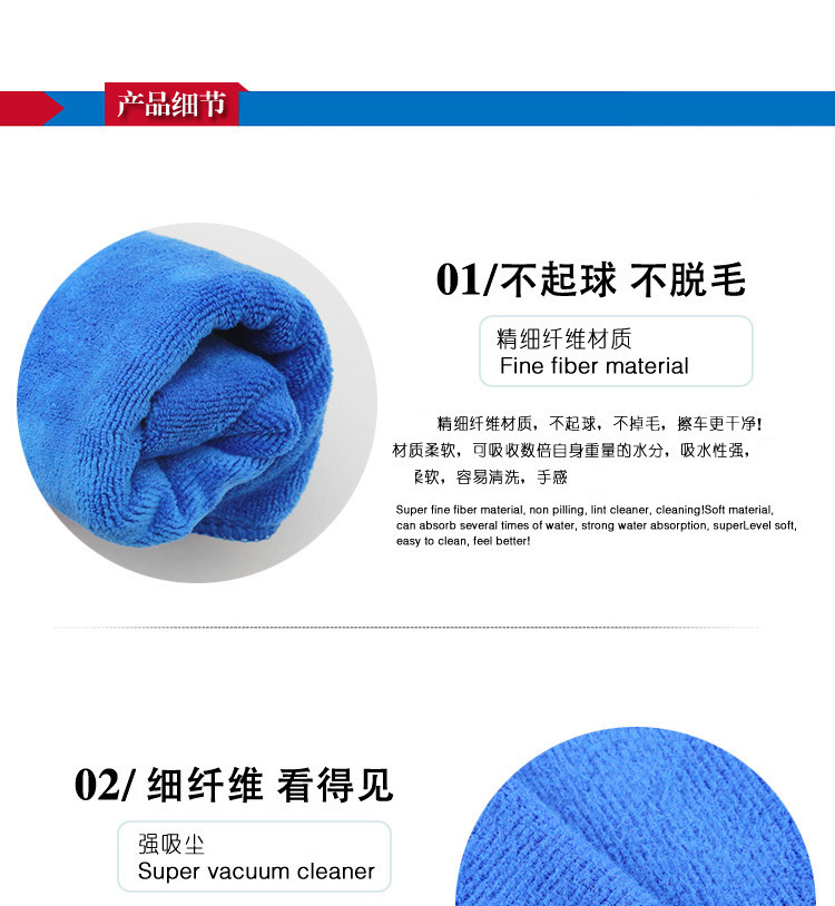 该产品由纤维精制而成,其纤维组织特别细腻,吸水力强,适合擦拭高档轿车。