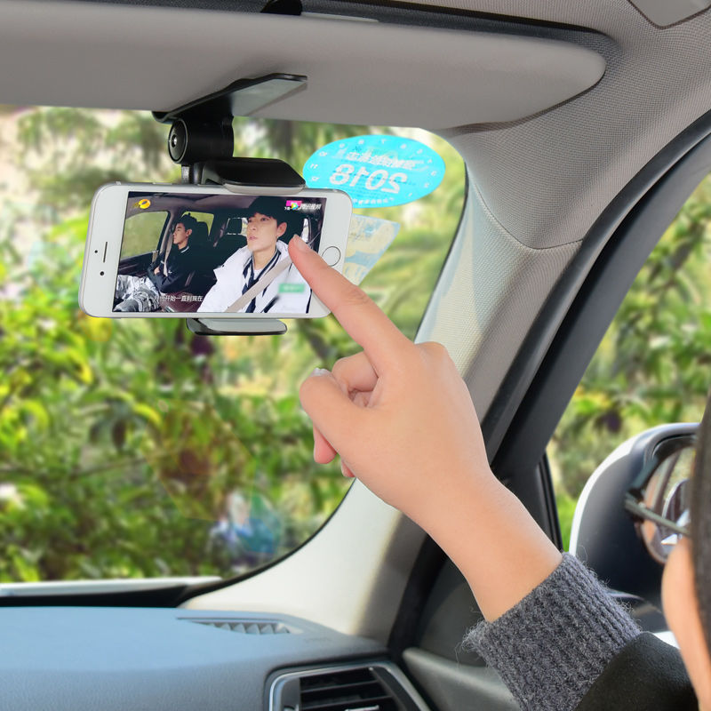 3,优势:遮阳板手机支架不挡视线,不易掉落,手机也成为摄像机且隐蔽效果好