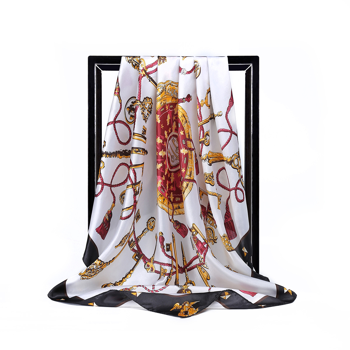 Gaohe 90cm 대형 스퀘어 스카프 유럽과 미국 패션 콜로 키 패턴 시뮬레이션 실크 스카프 무슬림 스카프