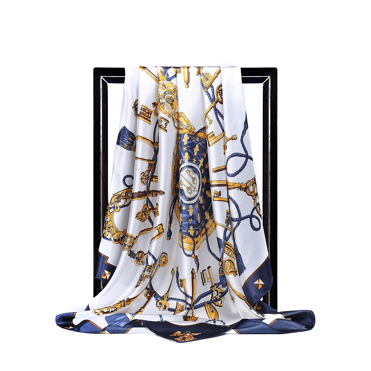 Gaohe 90cm 대형 스퀘어 스카프 유럽과 미국 패션 콜로 키 패턴 시뮬레이션 실크 스카프 무슬림 스카프스토어 가기