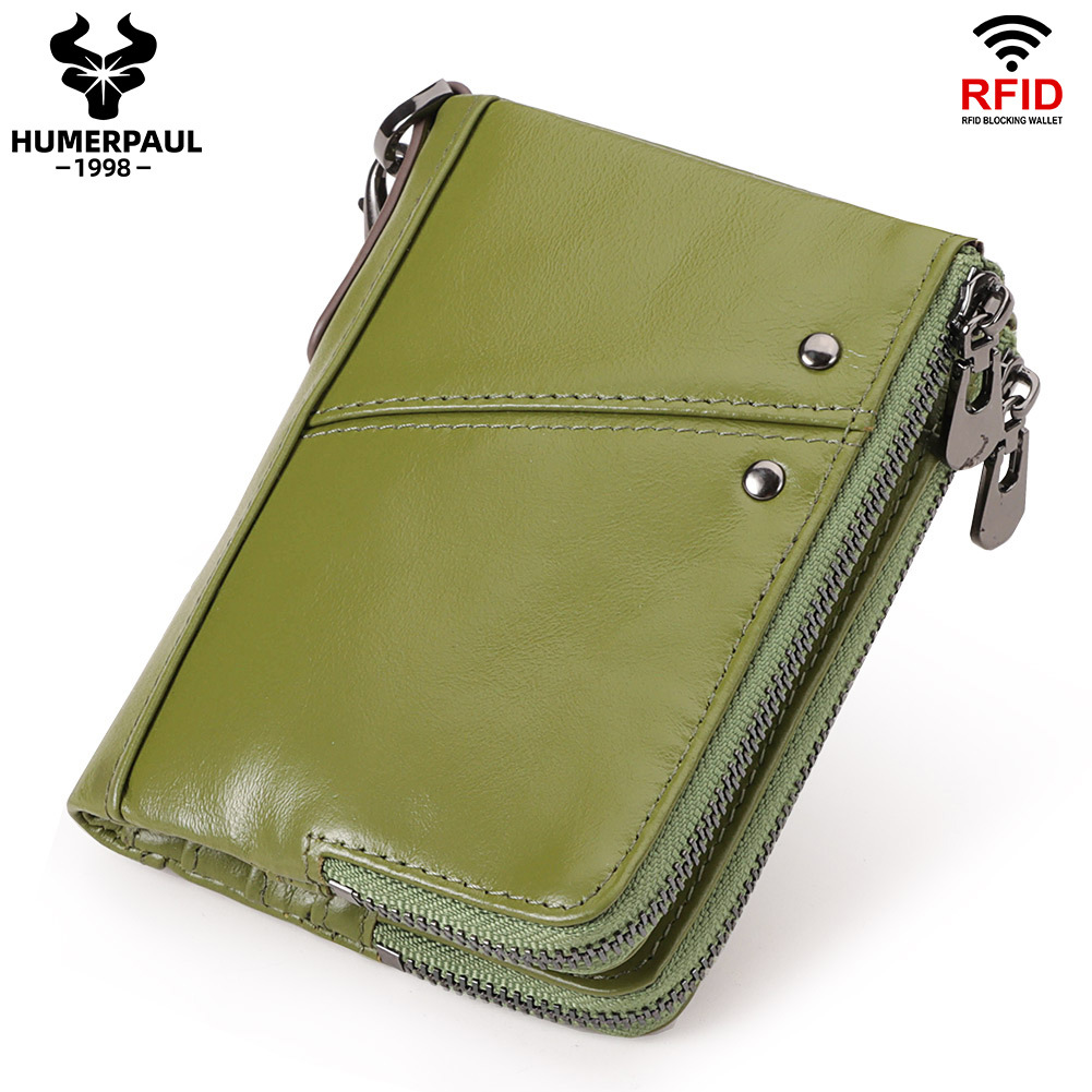 대외 무역 뜨거운 판매 RFID 정품 가죽 멀티 컬러 지갑 짧은 더블 지퍼 수직 지갑 패션 캐주얼 동전 지갑 도매