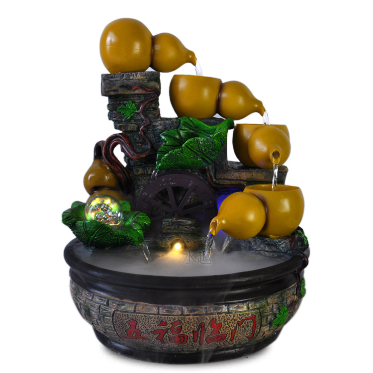 창조적 인 조롱박 공예 수지 분수 장식품 수제 새로운 이상한 실내 마이크로 풍경 물 풍경 장식품