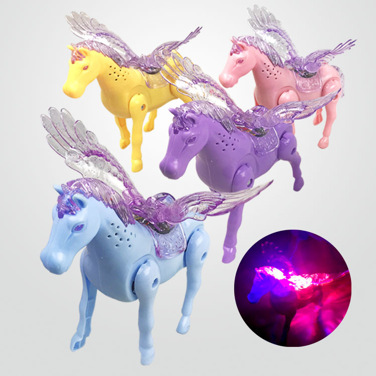 빛나는 음악 포니 전기 프로젝션 말 가죽 끈 조랑말 만화 동물 어린이 교육 장난감 도매스토어 가기
