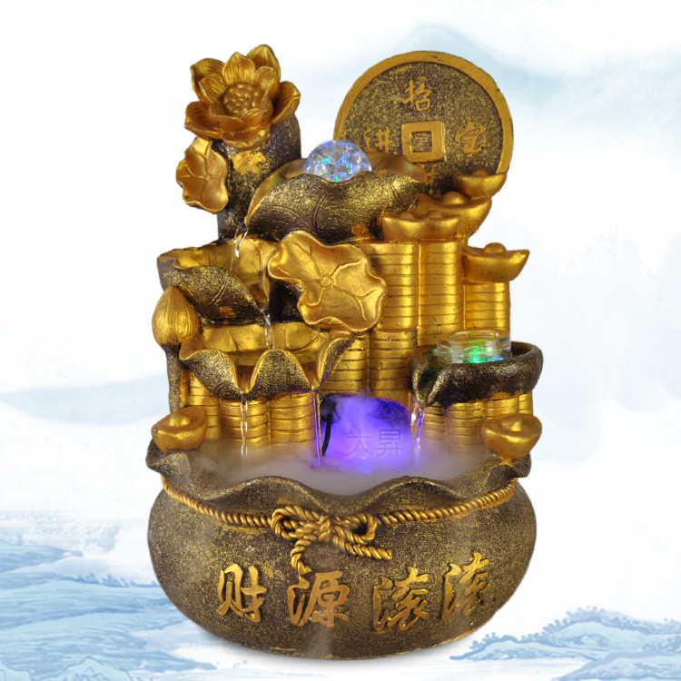 중국식 흐르는 물 분수 연꽃 고대 동전 실내 물 풍경 장식 사무실 데스크탑 비즈니스 장식품 선물