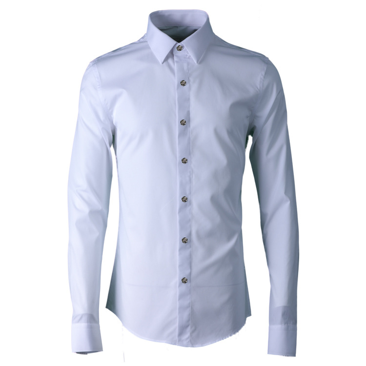뜨거운 합금 장미 버드 나무 장식 남성용 셔츠 긴팔 슬림핏 순면 흑백 남성 셔츠스토어 가기