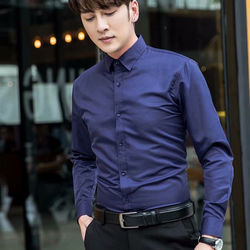 봄과 가을 새로운 흰색 셔츠 남자의 긴 소매 단색 비 다림질 셔츠 비즈니스 슬림 청소년 얇은 코트 머리카락의 세대