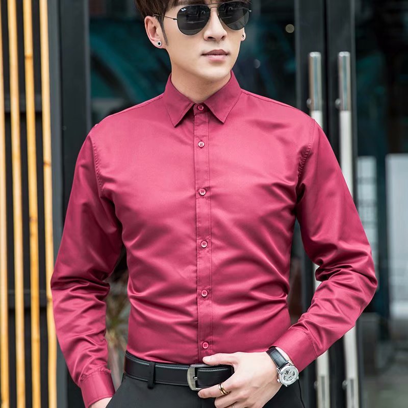 • 긴팔 단색 셔츠 버건디