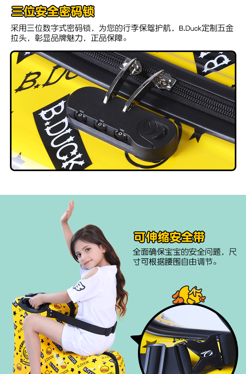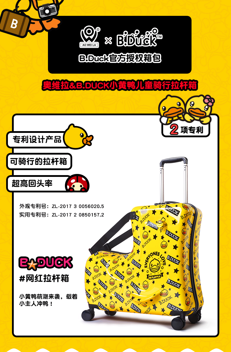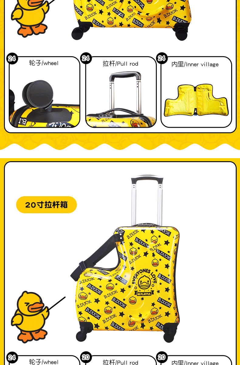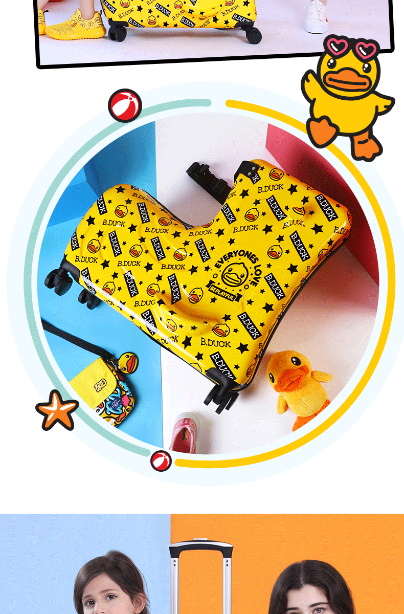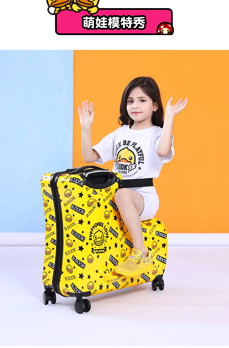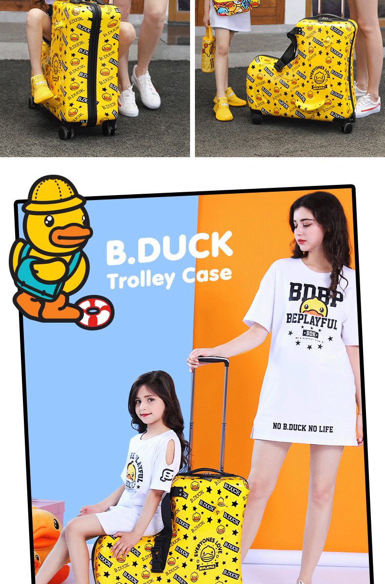 B.DUCK 재고 새로운 승마 수하물 케이스 아이들은 수하물 트로이 목마 가방 작은 노란색 DUCK 정품 브랜드를받을 수 있습니다