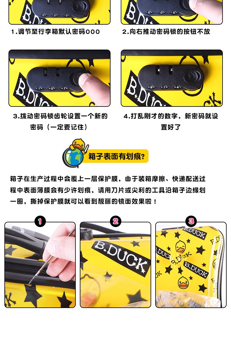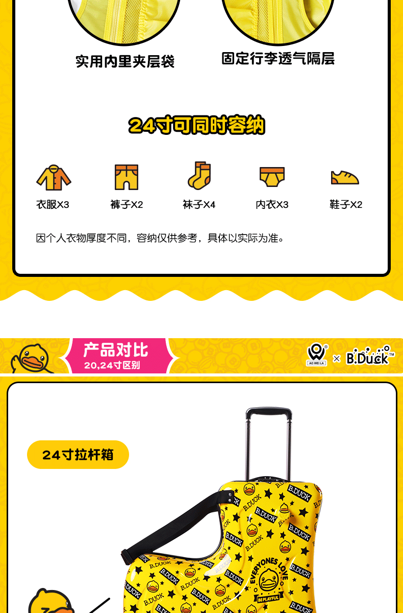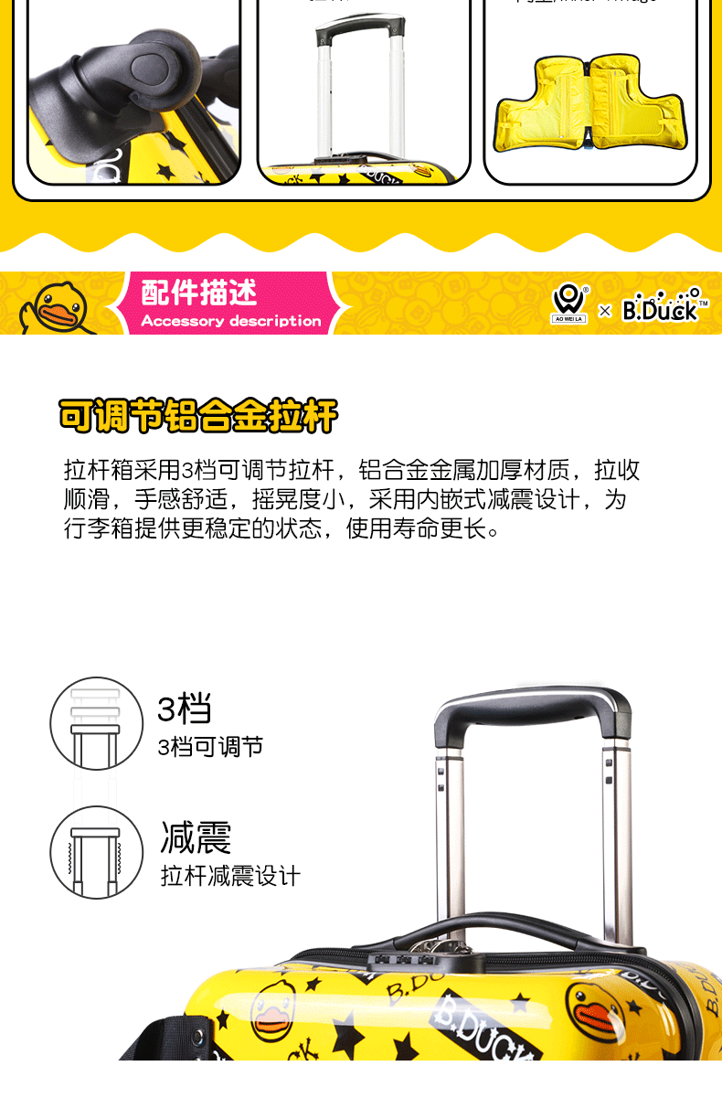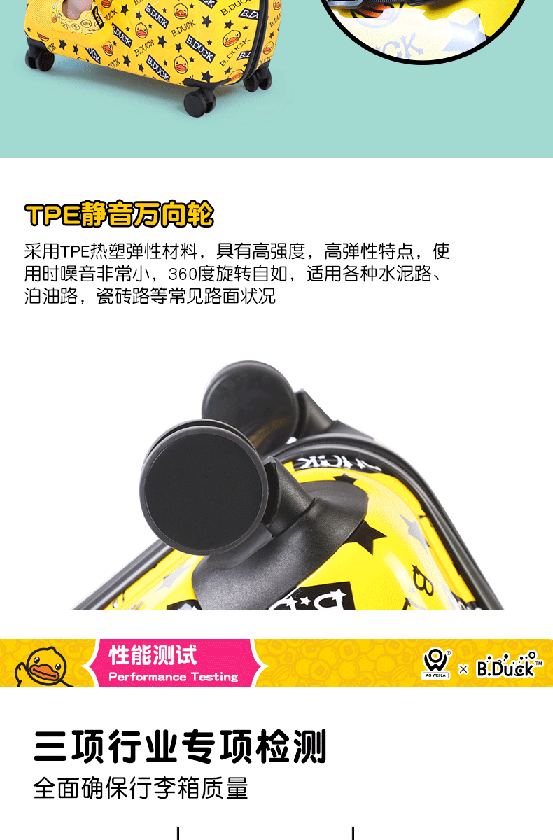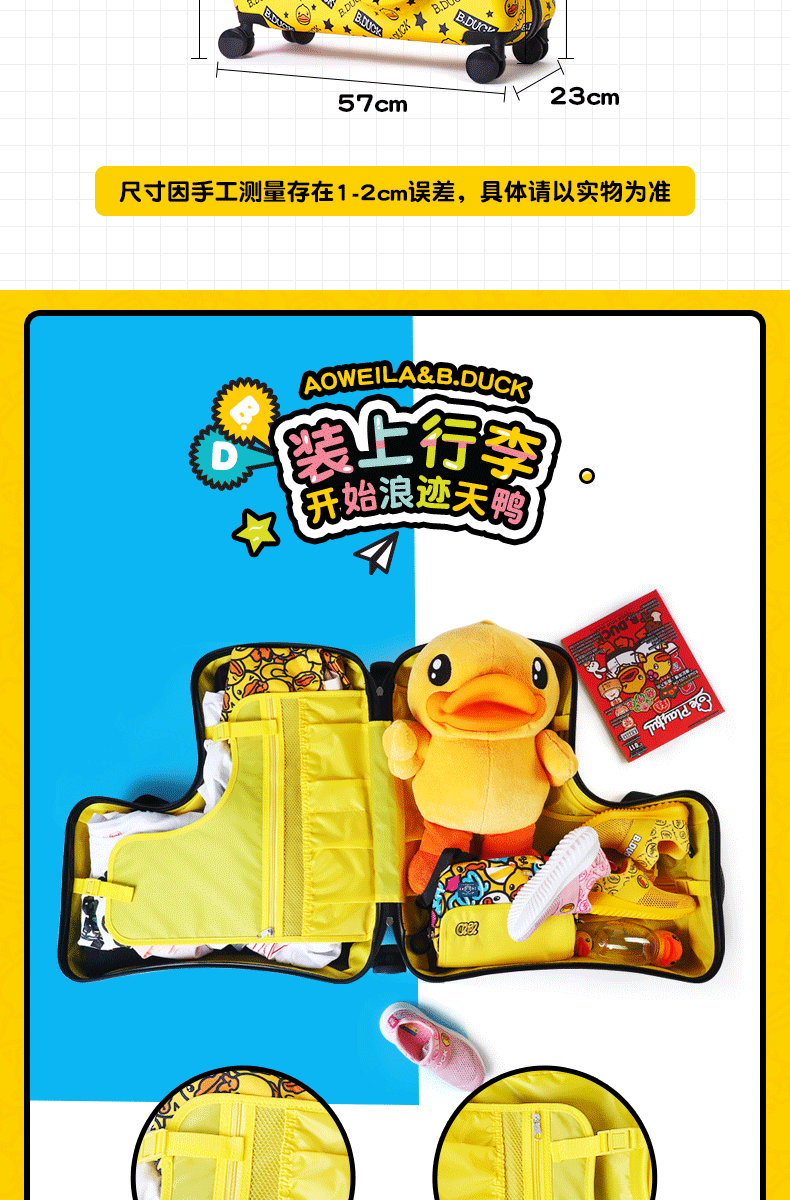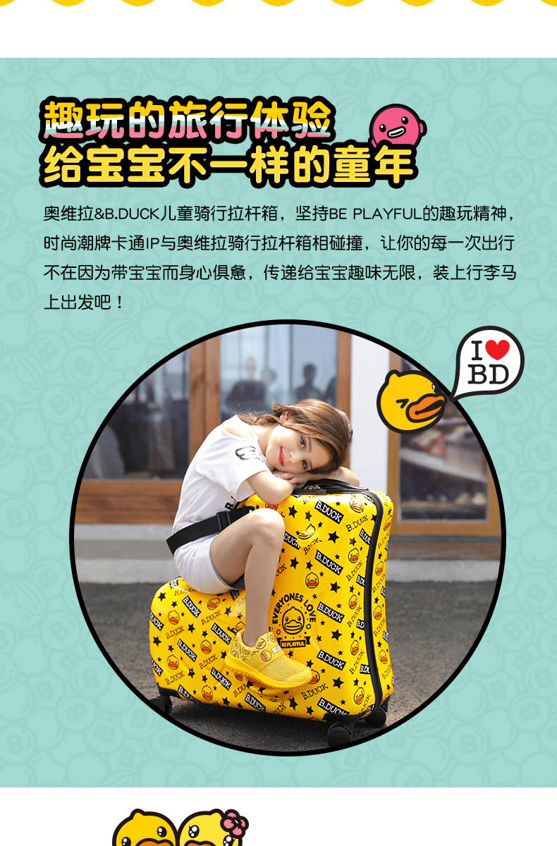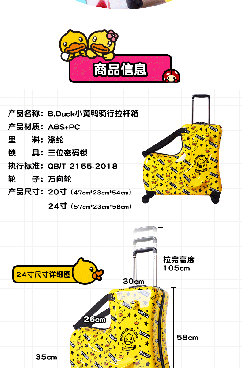 B.DUCK 재고 새로운 승마 수하물 케이스 아이들은 수하물 트로이 목마 가방 작은 노란색 DUCK 정품 브랜드를받을 수 있습니다