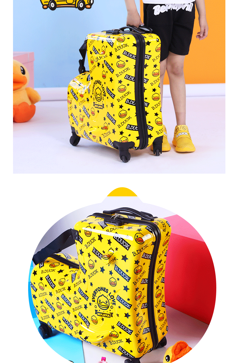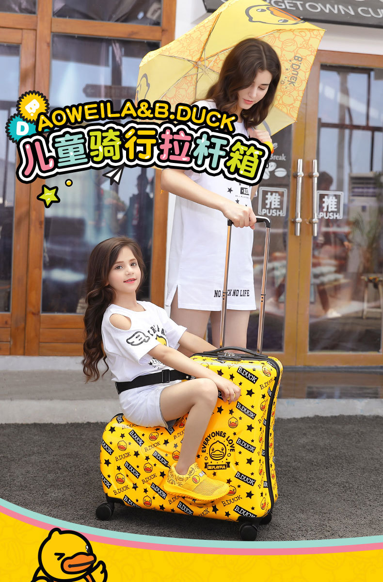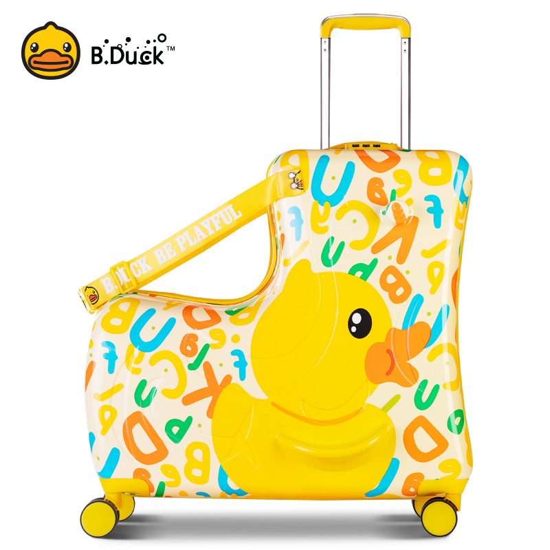 B.DUCK 재고 새로운 승마 수하물 케이스 아이들은 수하물 트로이 목마 가방 작은 노란색 DUCK 정품 브랜드를받을 수 있습니다스토어 가기