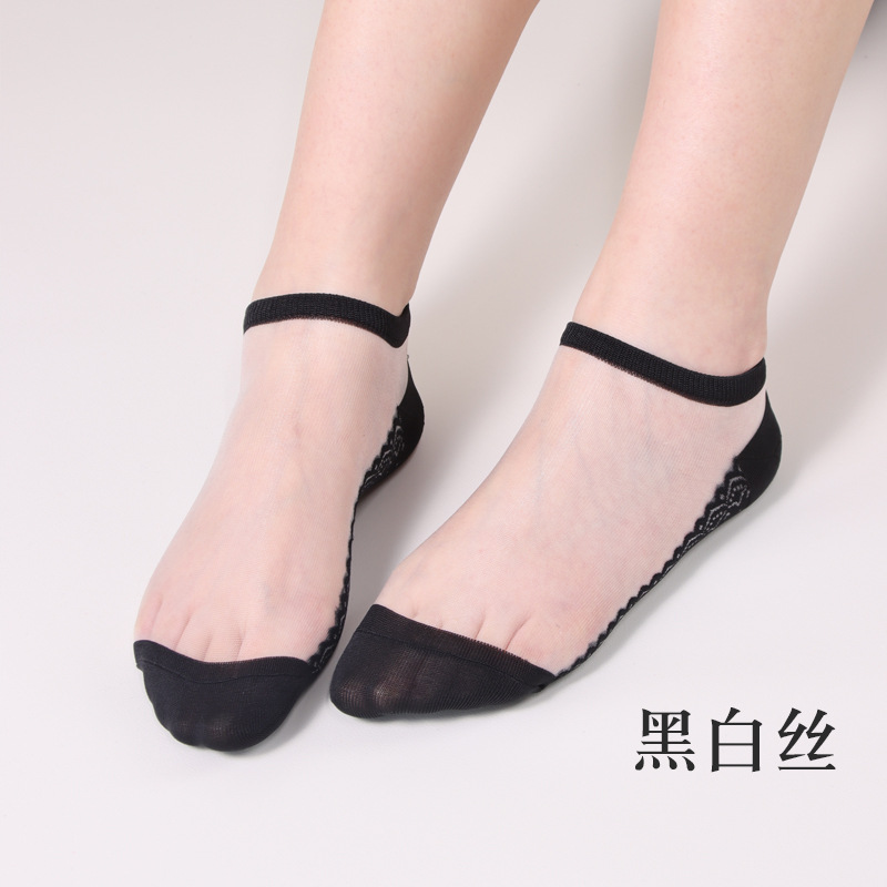 봄과 여름 새로운 얇은 여성용 양말 크리스탈 실크 짧은 양말 크리스탈 실크 소녀 보이지 않는 보트 양말 캐주얼 양말 보트 양말 도매스토어 가기