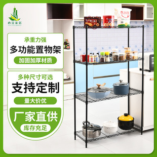 4层厨房置物架黑色蔬菜收纳架碳钢落地置物架免打孔微波炉置物架
