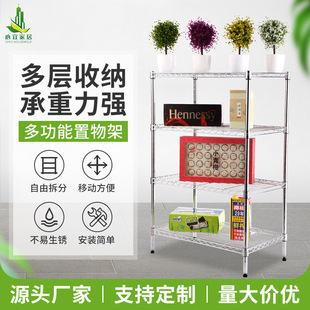 碳钢落地置物架可移动四层厨房铁艺收纳架子客厅置地储物架批发
