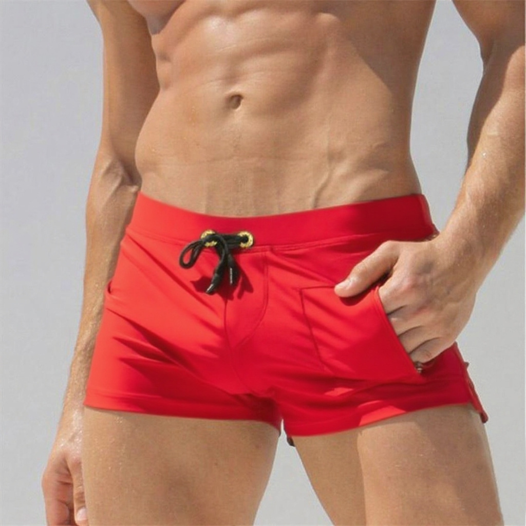 유럽과 미국 새로운 남자의 수영 트렁크 플랫 앵글 속건 해변 트렁크 세트 수영 남자의 수직 포켓 수영 트렁크 대외 무역