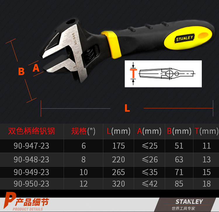 스탠리 툴 더블 컬러 핸들 크롬 바나듐 스틸 조절 렌치 범용 렌치 가정용 렌치 90-947-23