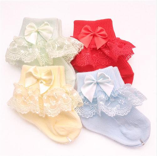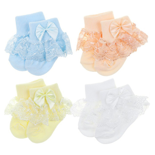 국경 간 대외 무역 새로운 레이스 양말 단색 활 양말 얇은 아기 양말 면화 귀여운 소녀 양말