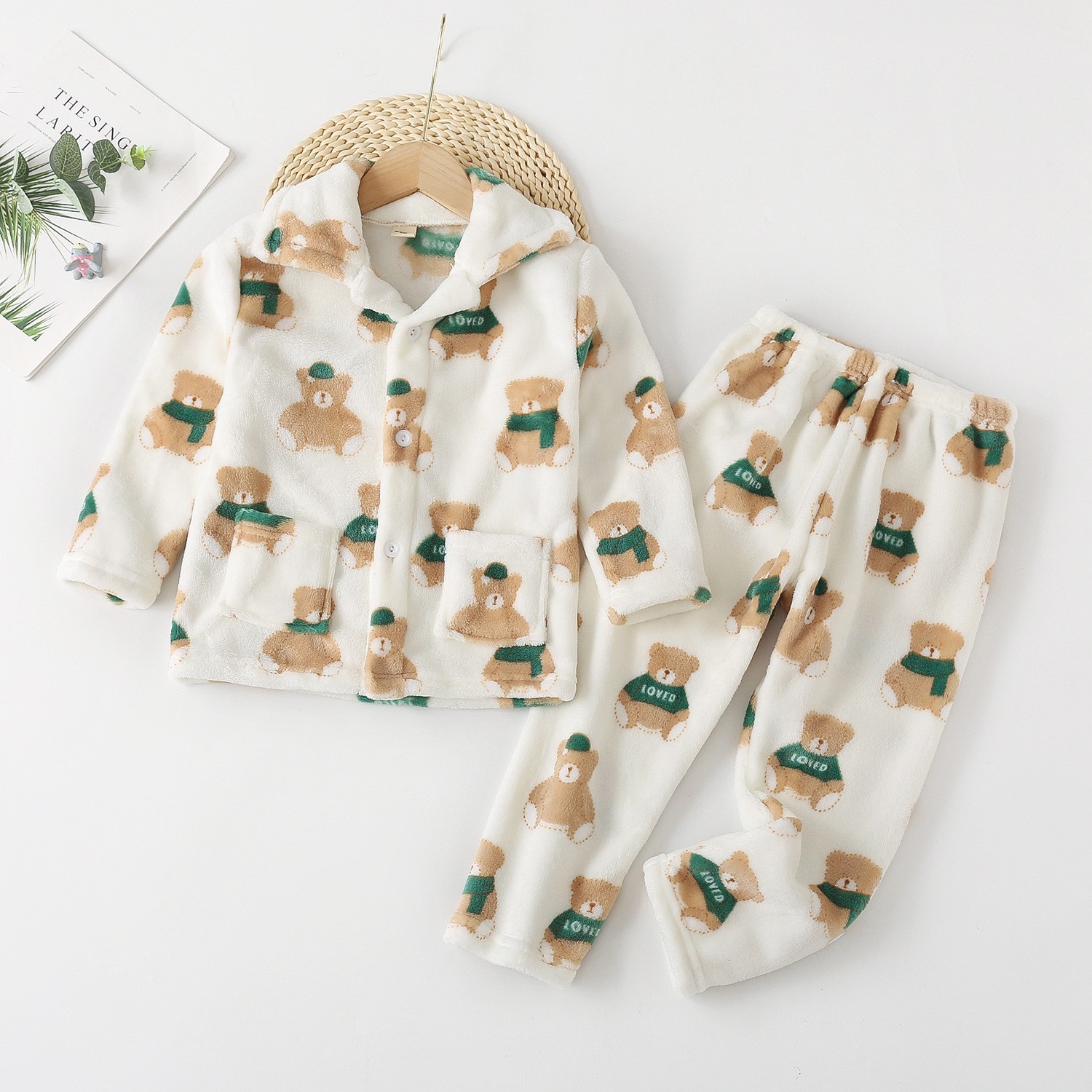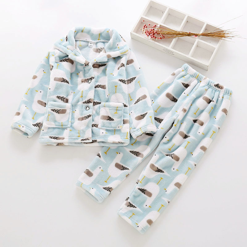 가을과 겨울 세트 어린이 잠옷 큰 어린이 플란넬 가정 옷 소년과 소녀 산호 양털 여성 아기 한국 스타일
