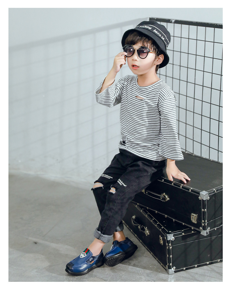 2025 봄과 가을 소년 영국 스타일 작은 가죽 신발 부드러운 밑창 소 가죽 캐주얼 성능 신발 미끄럼 방지 어린이 캐주얼 신발 도매