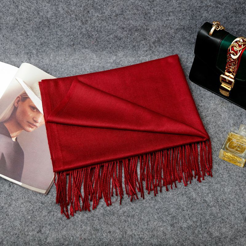 200g 단색 대량 판매용 모조 캐시미어 여성 스카프 단색 목도리 숄 가을 겨울 레드 스카프 여성 도매 및 배송