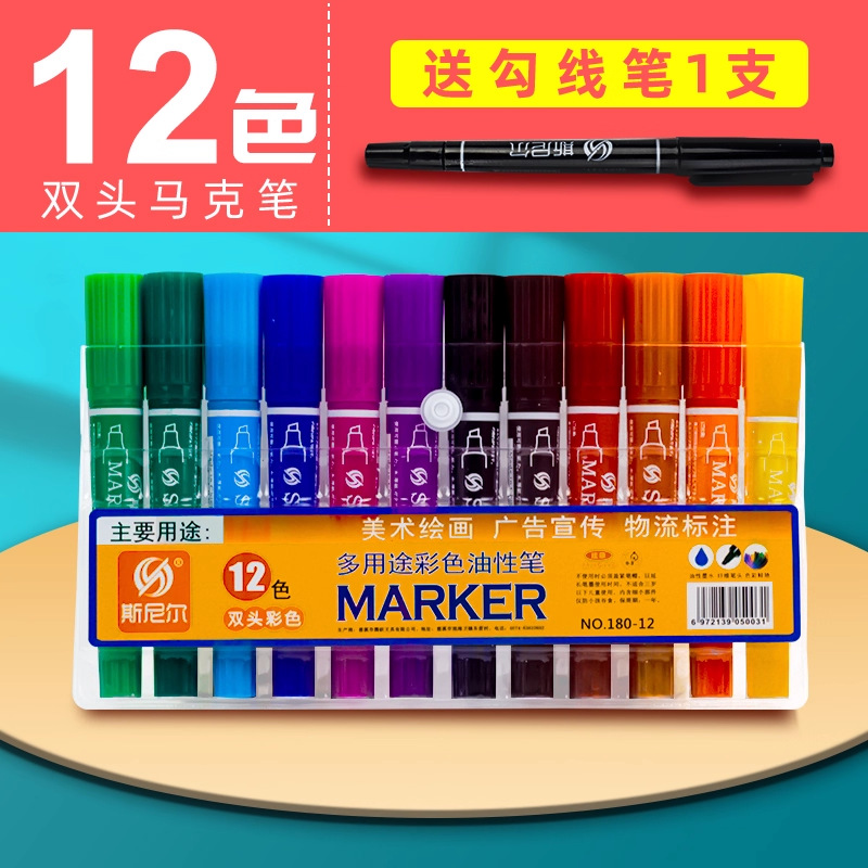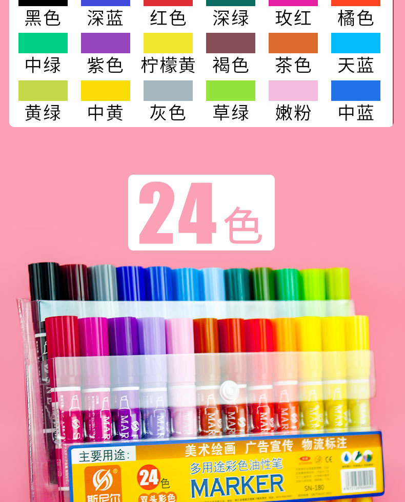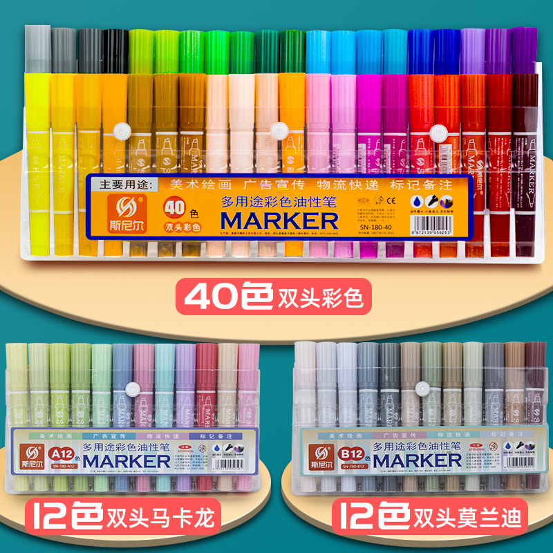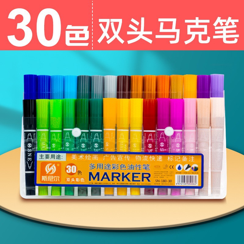 스나이어 마크 펜 24 컬러 수채화 펜 세트 오일 기반 더블 헤드 마커 펜 컬러 거친 아크릴 마크 팝 펜스토어 가기
