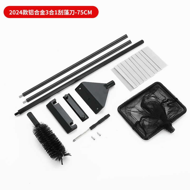 ZRDR 수족관 물고기 탱크 스테인레스 스틸 조류 스크레이퍼 3-in-1 알루미늄 합금 이끼 조류 제거 칼 브러시 헤드 그물 낚시 청소 도구스토어 가기