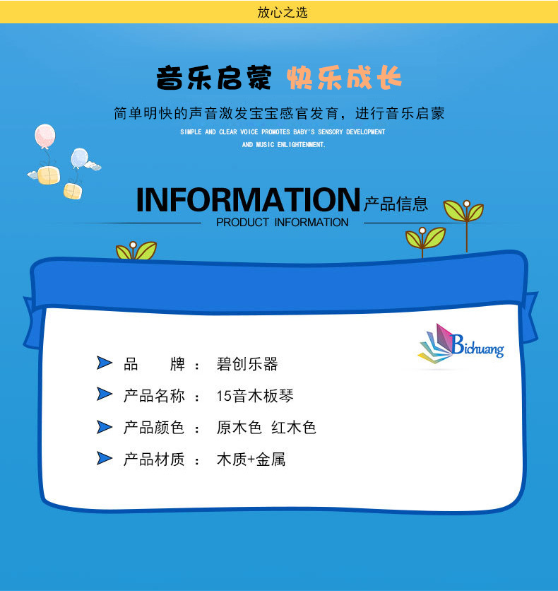 오르프 타악기 15음 목판 피아노 음악 교구 나무 손치기 피아노 어린이 조기 교육용 타악기