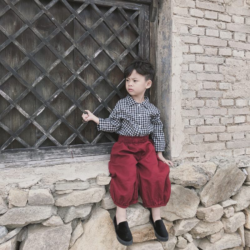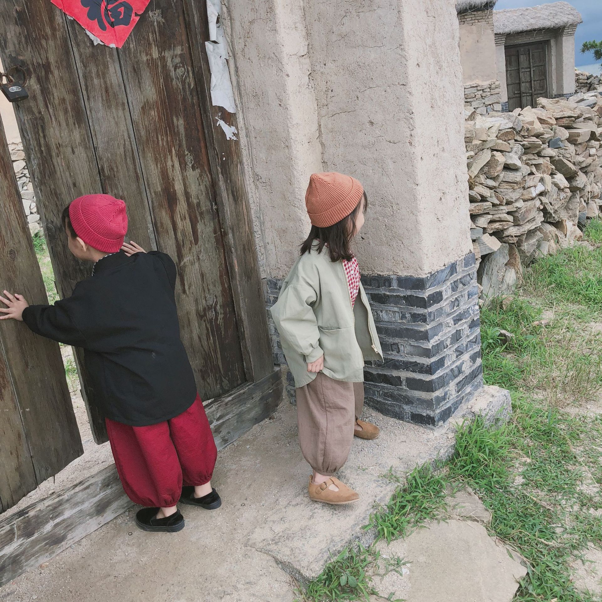 가을 소녀 바지 클래스 A 솔리드 컬러 9 점 바지 어린이 한국 스타일 면화와 린넨 베이비 블루머 소년 느슨한 배달