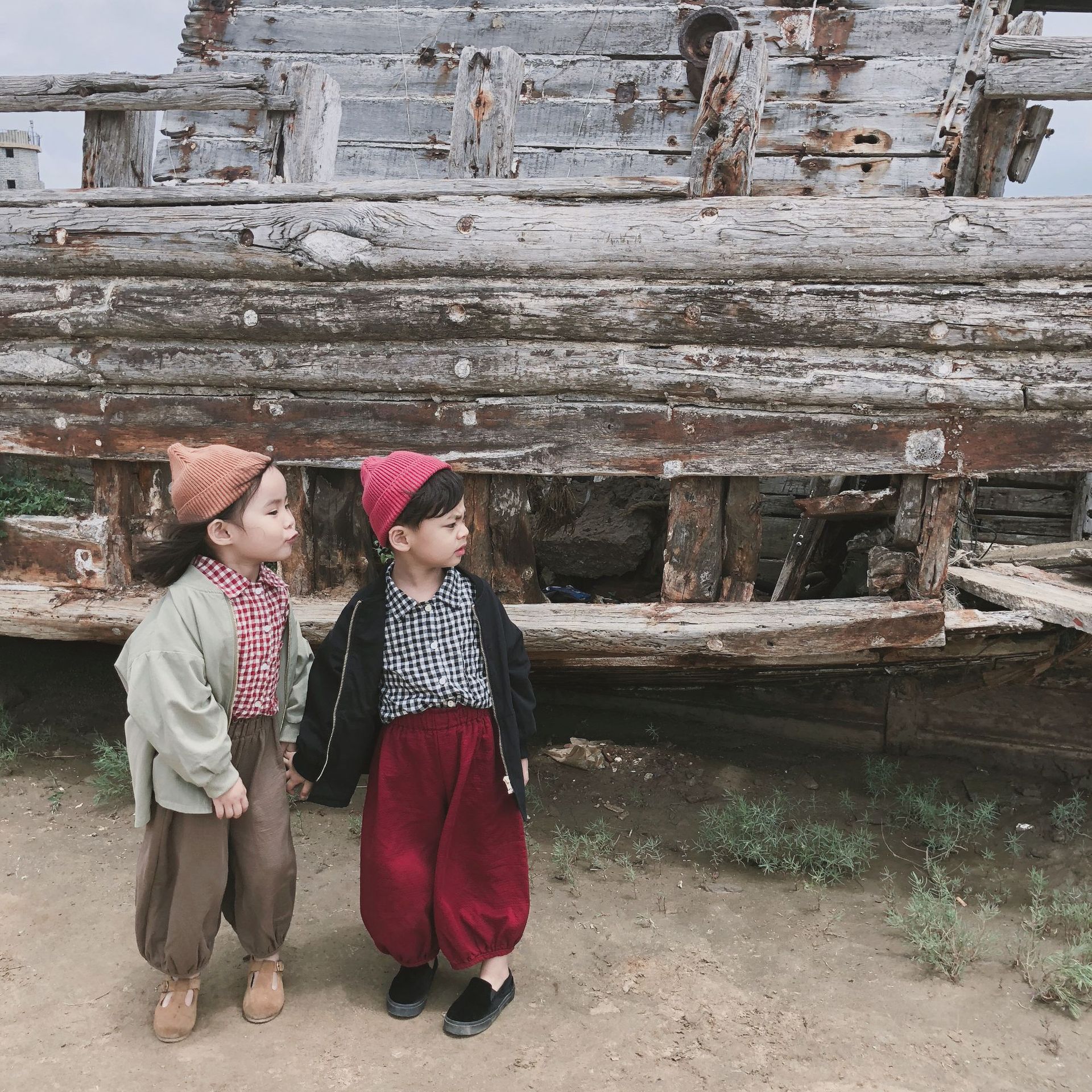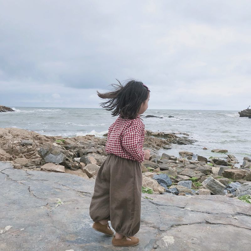 가을 소녀 바지 클래스 A 솔리드 컬러 9 점 바지 어린이 한국 스타일 면화와 린넨 베이비 블루머 소년 느슨한 배달스토어 가기