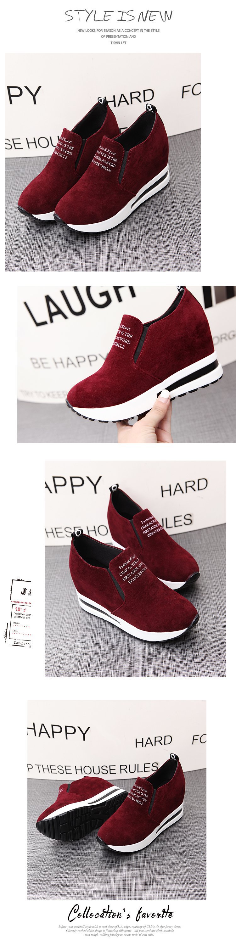 2019 가을 새로운 캐주얼 플랫폼 싱글 신발 여성 라운드 발가락 스웨이드 플랫 높이 증가 신발 여성 스니커즈 보드 신발 여성스토어 가기