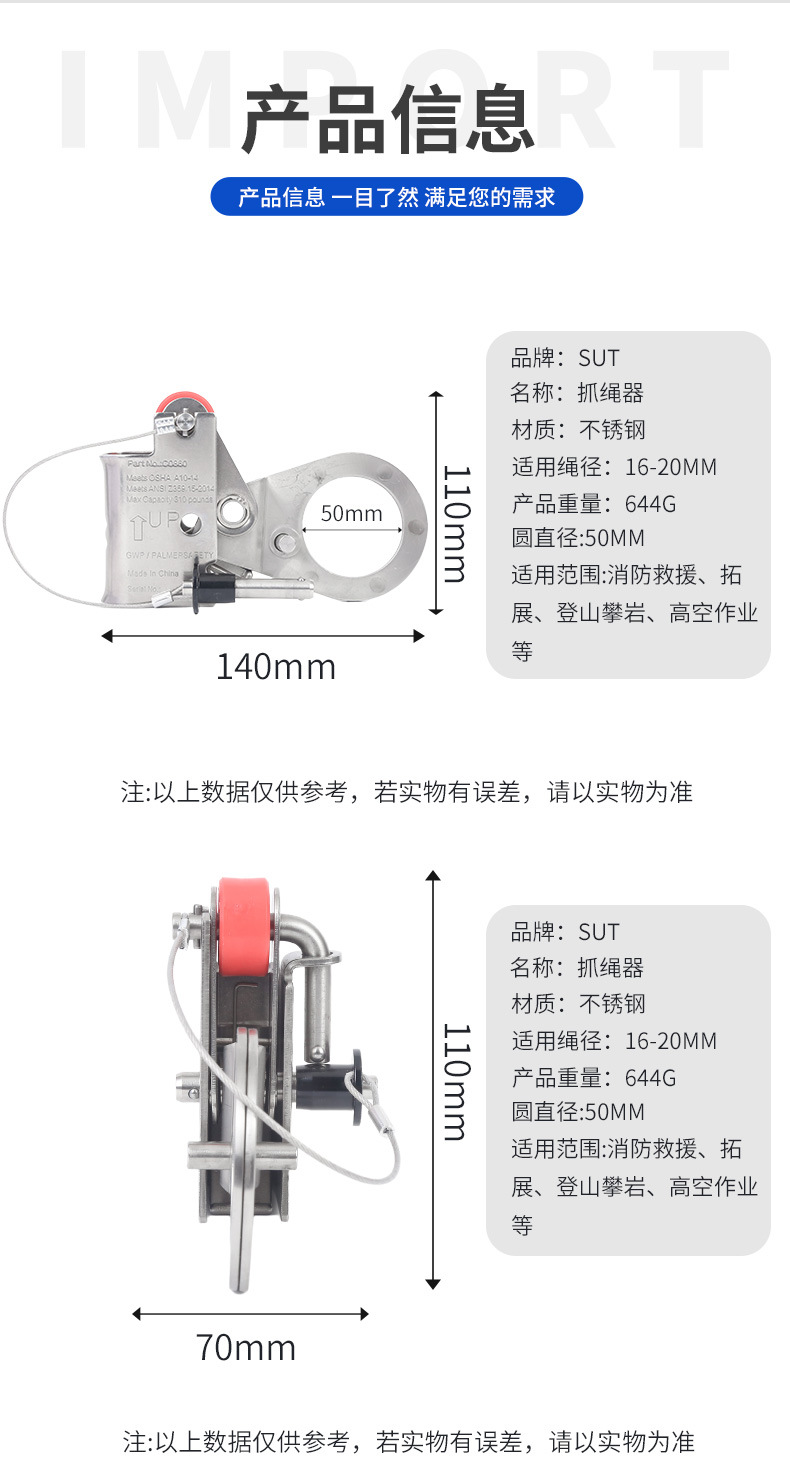 Sutai 직경 16 로프 그래버 자동 잠금 장치 공중 작업 안전 로프 낙하 방지 장치 부속품