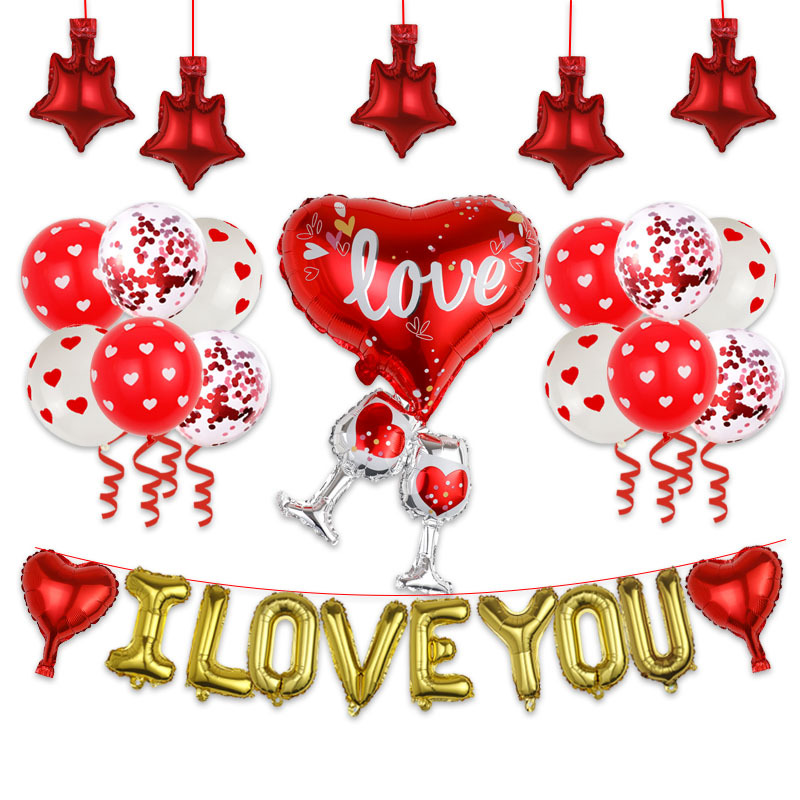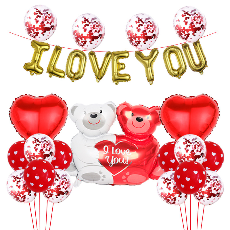 국경 발렌타인 데이 풍선 만화 포옹 곰 모양 스페인 사랑 편지 알루미늄 풍선 배경 장식