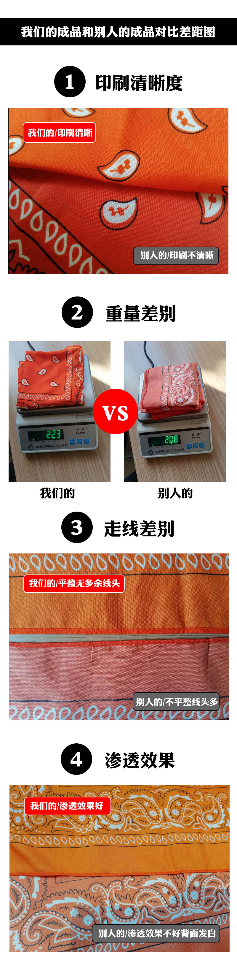 因为做工不一样:1图案清晰度。2重量差别(图片上的称重是涤纶方巾,棉的还会更重)。3缝纫走线差别。4反面图案渗透效果不一样。 5手感更柔软具体看如下对比图(纯实拍对比图)