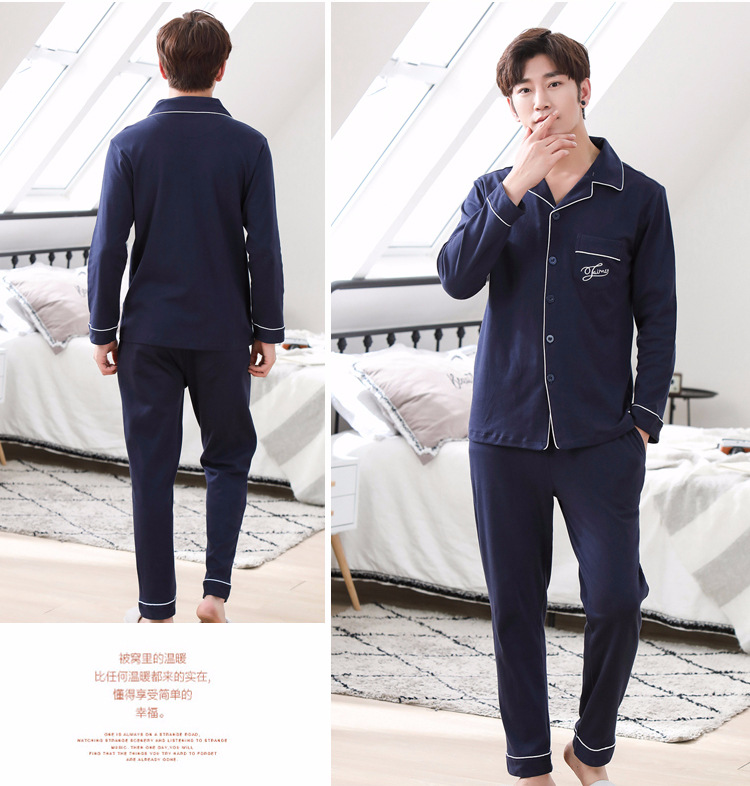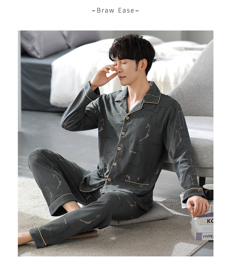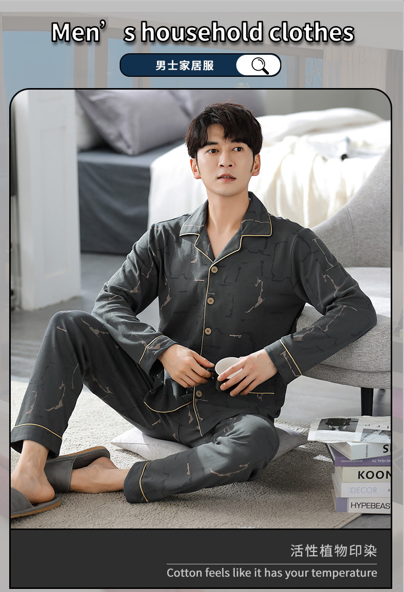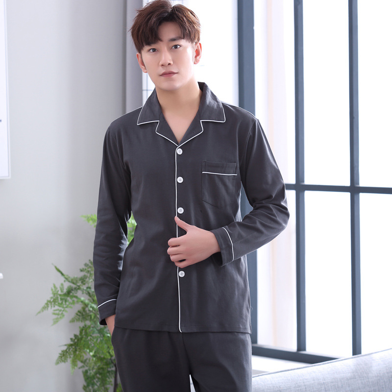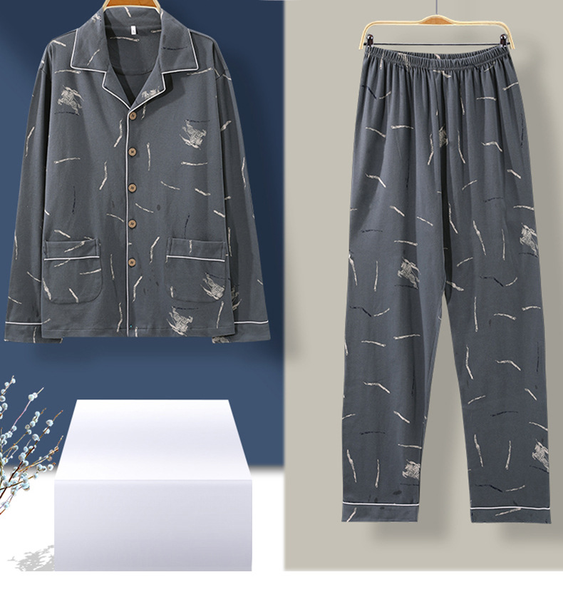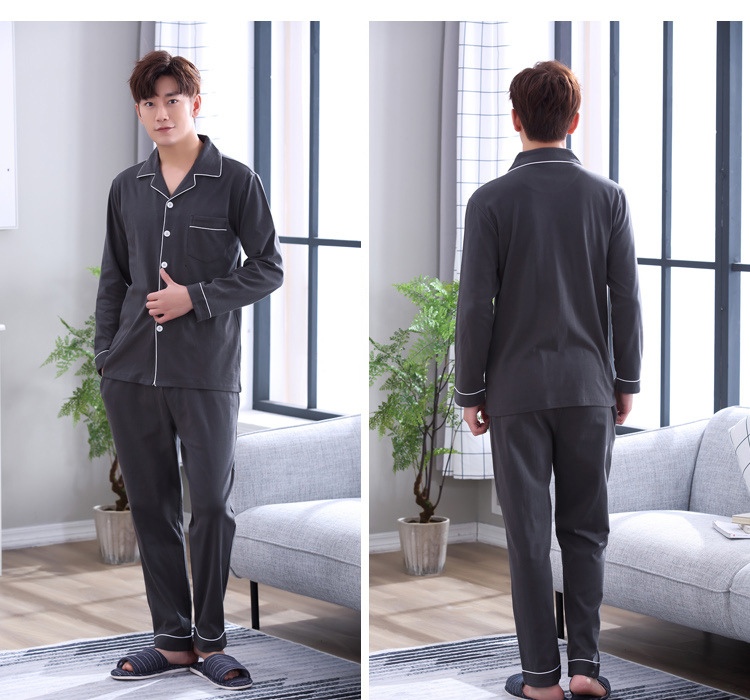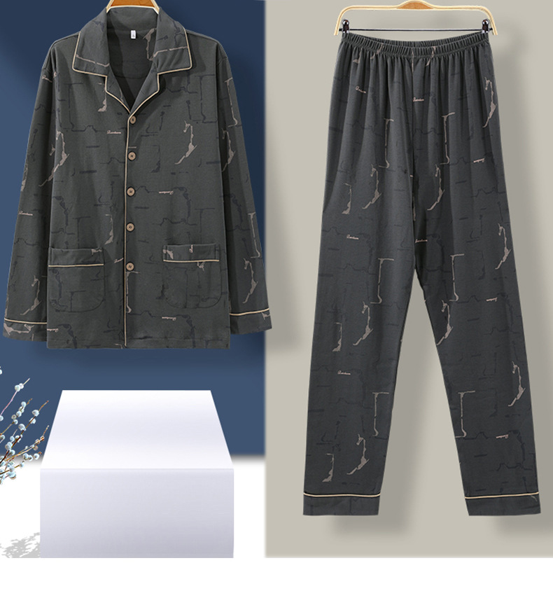 가을 새로운 면 플러스 사이즈 남자의 잠옷 긴 소매 옷깃 카디건 플러스 사이즈 캐주얼 가정 옷 세트스토어 가기