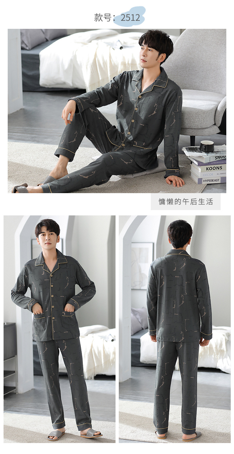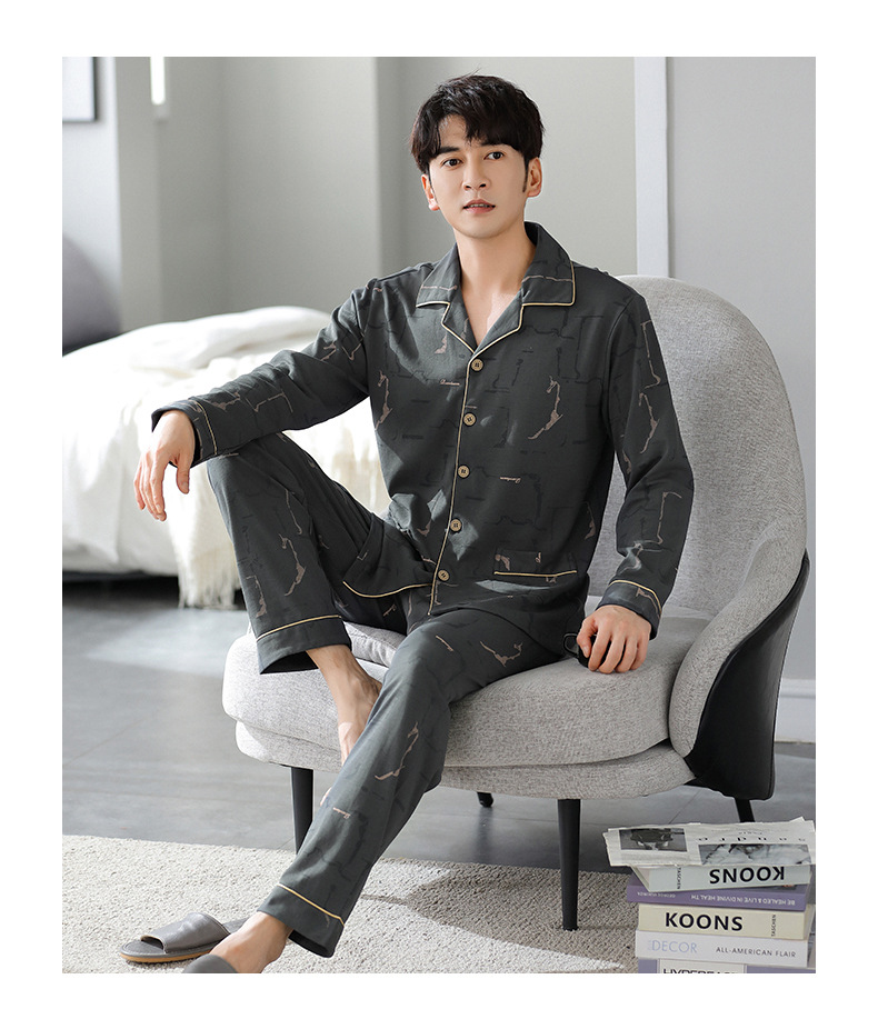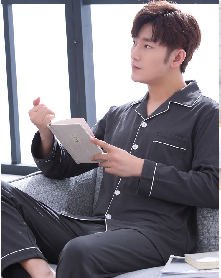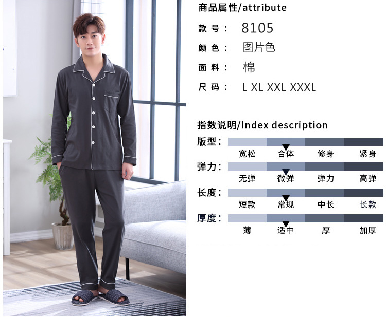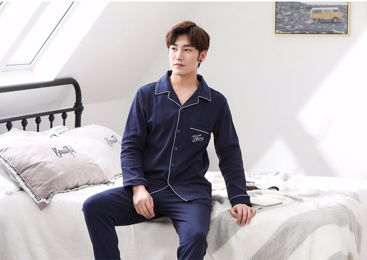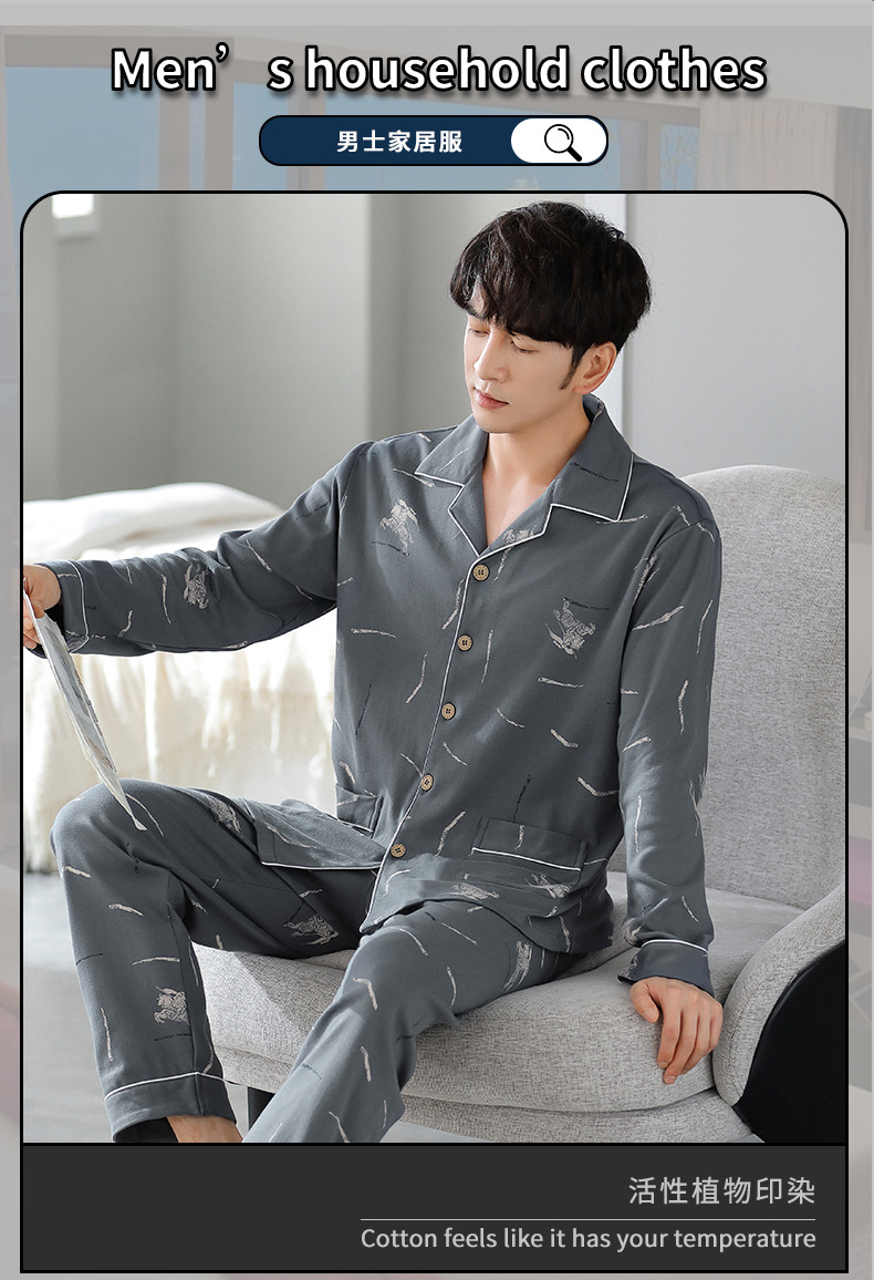 가을 새로운 면 플러스 사이즈 남자의 잠옷 긴 소매 옷깃 카디건 플러스 사이즈 캐주얼 가정 옷 세트스토어 가기