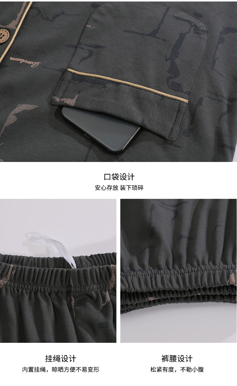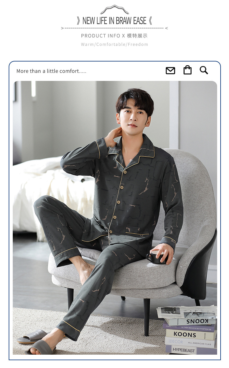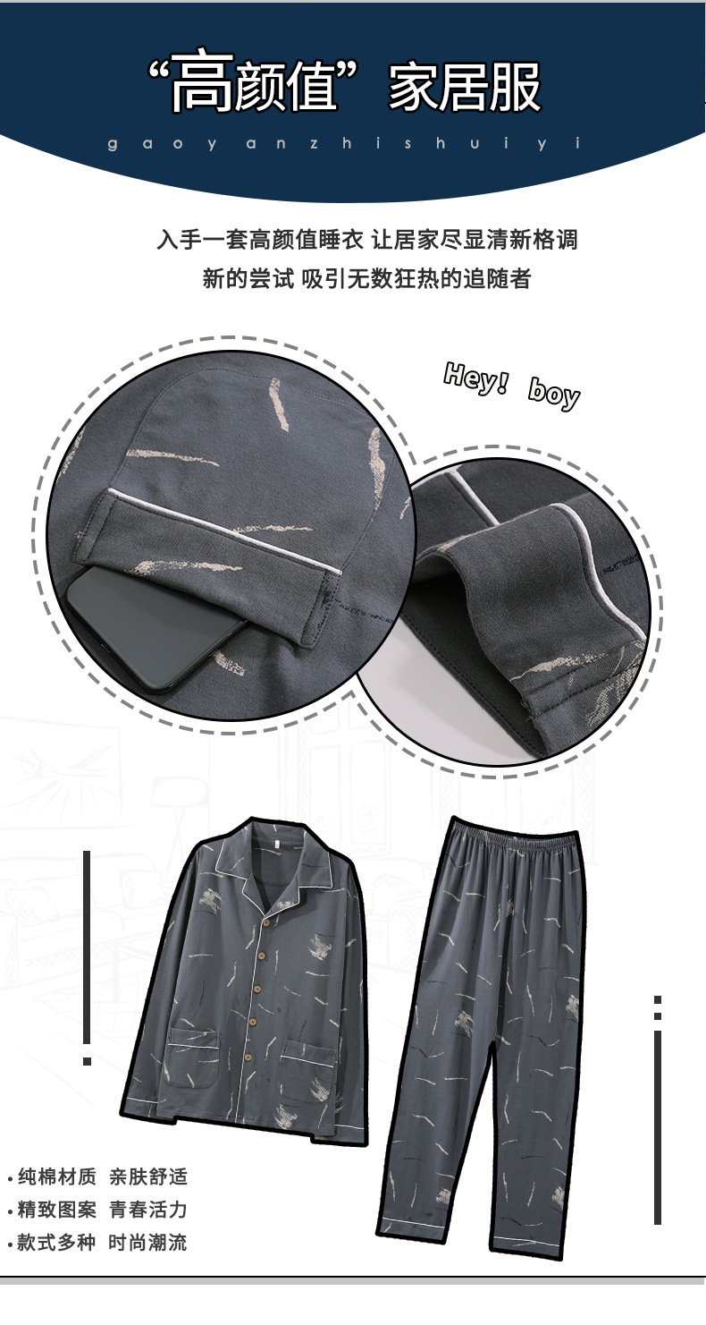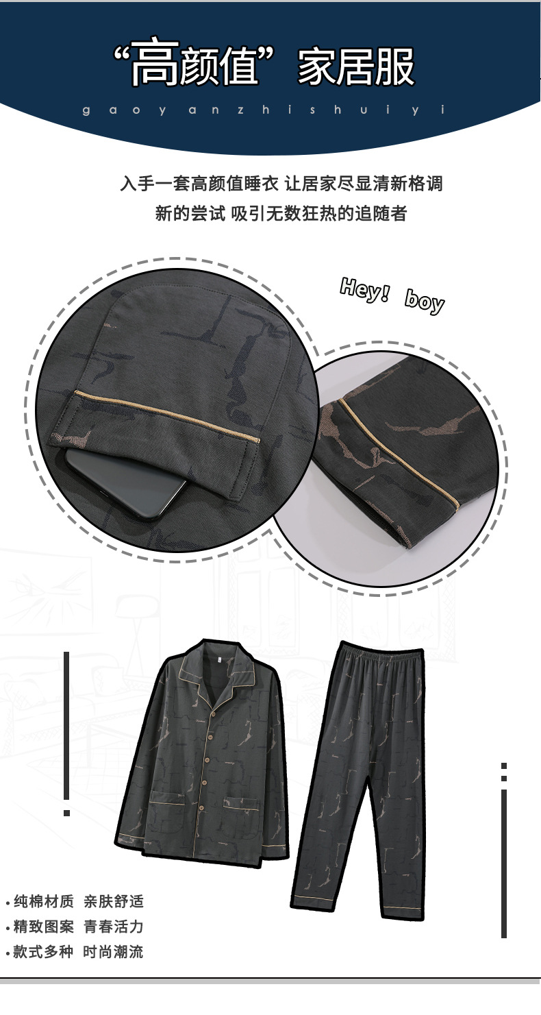 가을 새로운 면 플러스 사이즈 남자의 잠옷 긴 소매 옷깃 카디건 플러스 사이즈 캐주얼 가정 옷 세트스토어 가기